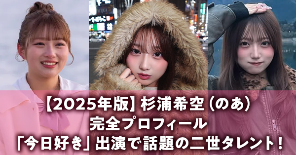 未分類【2025年版】杉浦希空(のあ)完全プロフィール|「今日好き」出演で話題の二世タレント! 2025年11月11日 mark555 https://kaeru555.com/wp-content/uploads/2024/03/カエルの國ロゴ.png kaerunokuni